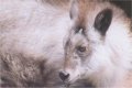 Weight: 25-140 kg / 55-308 lb.Unlike its relatives, the Japanese serow's upper coat not uniform in colour. Rather, it is mottled - made of long hairs varying from white to purplish black in colour. The legs are dark brown or black in colour, and there may be a dark "collar" encircling the lower neck. There is a white "beard" under the chin which extends down the throat and up along the jowls. The long ears are pointed and covered in brown hair, while the bridge of the nose is dark and naked. The underparts are light. The preorbital glands (found in front of the eyes), are well developed, and excrete a clear substance which smells of acetic acid (vinegar). The tail is moderately bushy. Both sexes carry the slightly curved horns, which are ridged on their lower two thirds and grow 8-15 cm / 3.2-6 inches in length.