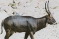Weight: 150-250 kg / 330-550 lb.The shaggy, coarse coat is reddish brown to grizzled grey in colour, darkening with age. Facial markings are composed of a white muzzle, lighter eyebrows and insides of the ears, while there is a cream-coloured 'bib' on the throat. The most conspicuous feature of this antelope is a large white 'halo' or hollow ring which surrounds the base of the tail on the rump (in certain subspecies, most notably the Defassa waterbuck K. e. defassa, the area within the circle is covered with white hair, creating a rump patch. The body is heavyset, and the strong legs are black in colour. The heavily ridged horns are found only in males and sweep in an arc backwards and upwards, with the tips pointing forwards. They grow 55-100 cm / 1.6-3.3 feet long.