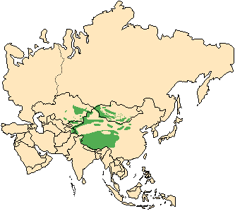 Hilly terrain near high mountains at elevations of 1,300-6,100 meters / 4,200-19,500 feet throughout central Asia.