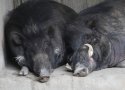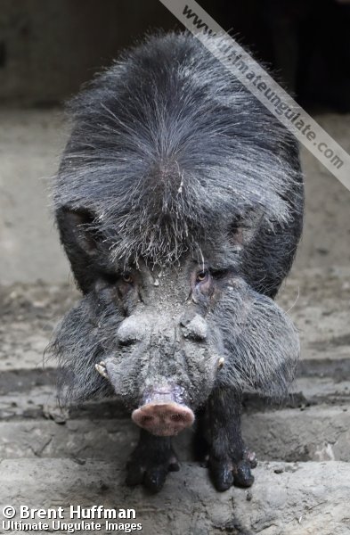 - The Visayan warty pig (Sus cebifrons) is generally paler in color (grey rather than black in the Philippine warty pig) and has a distinct pale band across the snout. Males of both species develop impressive manes.