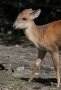The red duiker is a non-seasonal breeder, with births occuring year-round. Infants are approximately one kilogram at birth, and are very dark - almost black - in color. For at the least their first two weeks, neonates lie hidden in dense thickets and are visited periodically by their mothers for nursing.