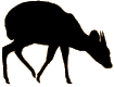 Several features unite the species within this group, notably the skull structure, dentition (closely resembling fossils from 12 million years ago), and presence of solid horn cores. The preorbital glands are well developed in most species: they are composed of a spherical mass of glandular tissue located in front of each eye. These glands secrete a sticky black substance which is carried by a central duct to a circular patch of bare skin. The opening of this duct is covered by a purse-like fold of skin which can be opened wide during the deposition of secretions. The Neotragini have traditionally been grouped together on the basis of small body size (all species weigh less than 30 kg); all genera also possess "primitive" characteristics. However, following molecular analysis, this classification seems to be erroneous. While most of the dwarf antelope are closely related, the genera Neotragus and Oreotragus, while clearly within the Aegodontia, do not have clear evolutionary affinities with any subfamily, including the Antilopinae. Indeed, it has been proposed that both of these genera are unique lineages, and may have diverged from other bovids during the early Miocene. They are shown in the phylogeny below as basal to the subfamily Antilopinae in order to put this discussion into perspective: as of yet, there is no consensus as to the names of their respective subfamilies. With the exclusion of Neotragus and Oreotragus, the traditional tribe Neotragini is now polyphyletic. Naming conventions have not yet been resolved (can there be a Neotragini that excludes the genus Neotragus?), and thus the classical names are still used here. Neotragus is a primarily forest-dwelling genus, with a hare-like build and backward-slanting horns (the preorbital glands lack a surface fold of skin). Oreotragus is a specialized rock-dweller, inhabiting kopjes and cliffs adjacent to savannahs. The remaining dwarf antelopes (Dorcatragus, Madoqua, Ourebia, and Raphicerus, which DO form a taxonomically-valid grouping) all inhabit relatively arid environments (savannahs and scrub mosaic), and have several adaptations for conserving water, notably nasal panting. All are selective feeders and rarely (if ever) need to drink. Unlike the Antilopini, they often form monogamous pairs. Short, vertical, spike-like horns are found only in males (never in females). |